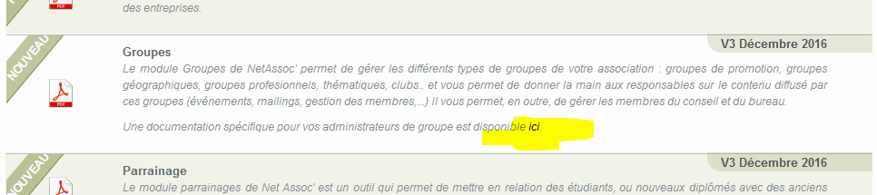 Aide (en haut à droite) > Guides utilisateurs > Groupes