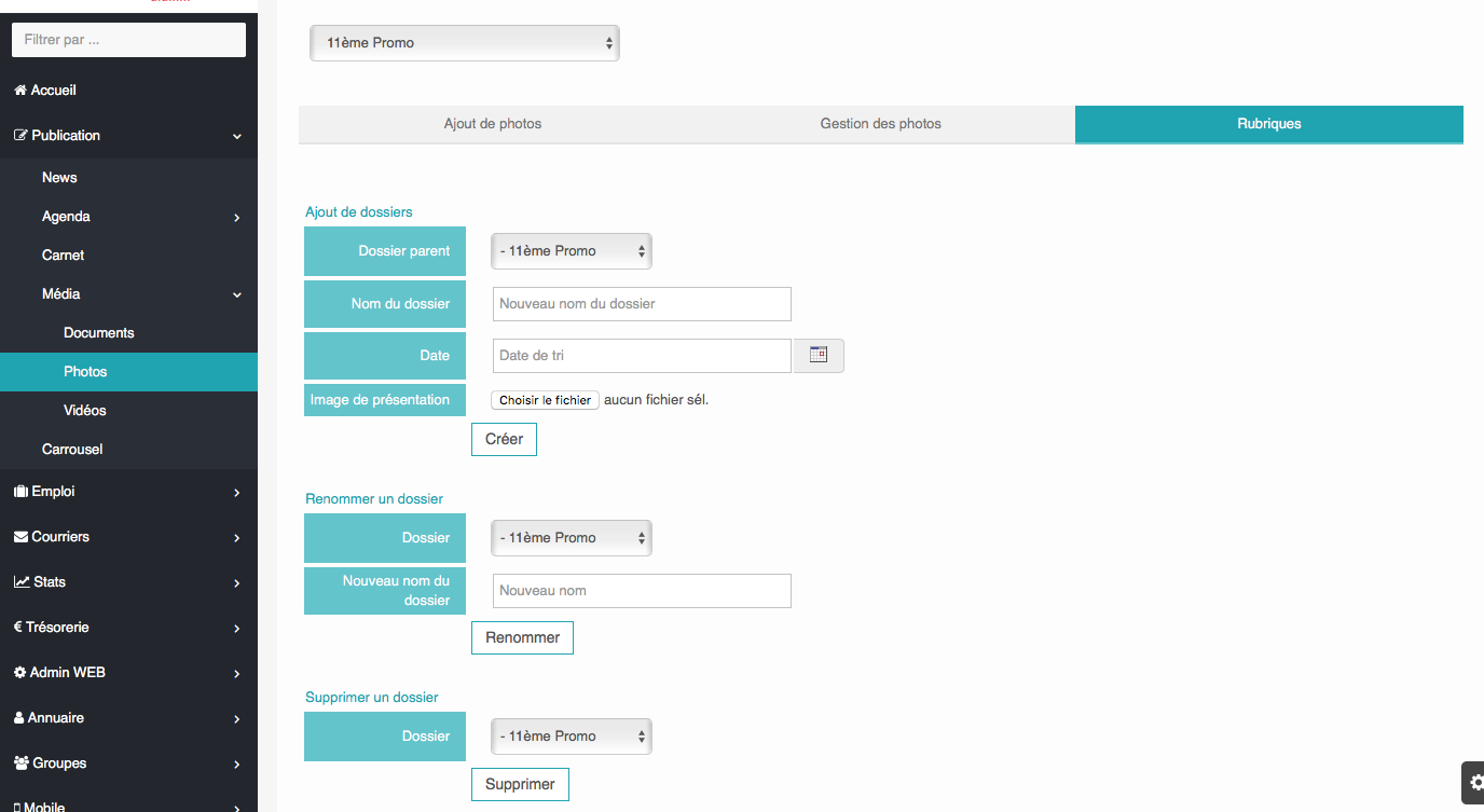Après avoir accédé à la page administation vous pouvez créer un des Albums Photo