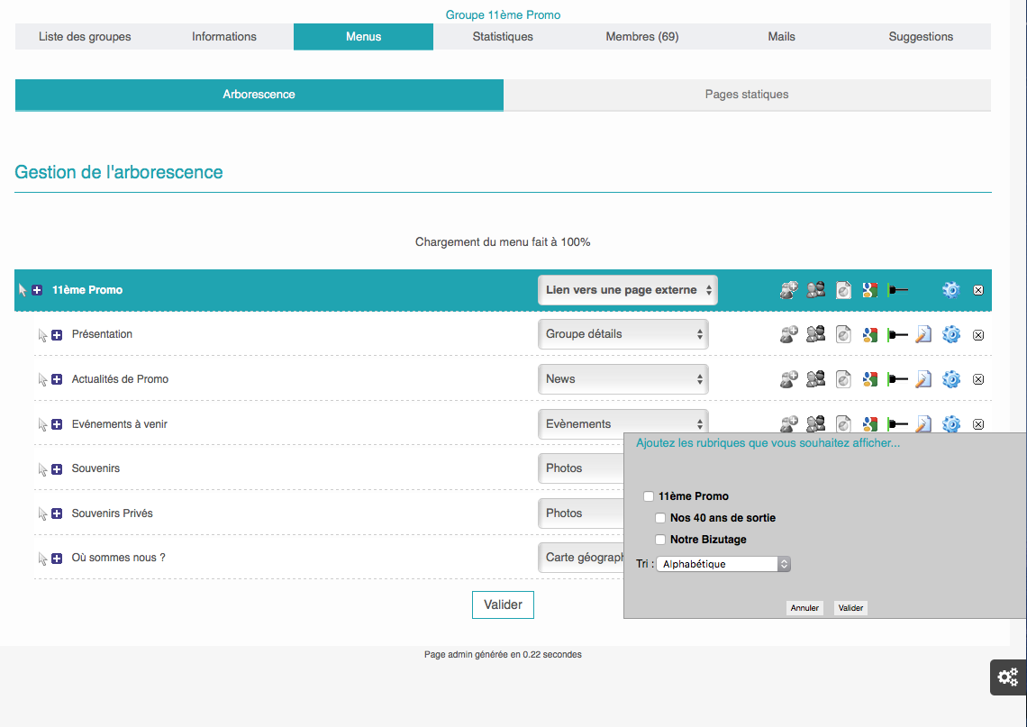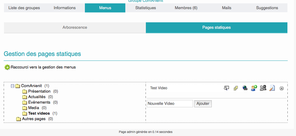 En premier lieu créer une rubrique Vidéo , ici "Test Vidéo" choisir le Module "Page Statique"