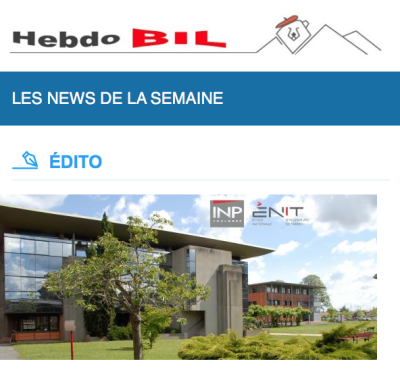 L'Hebdo BIL : Newsletter hebdomadaire reprenant les News parues dans la semaine et les Evénements à venir dans les prochains 7 jours.