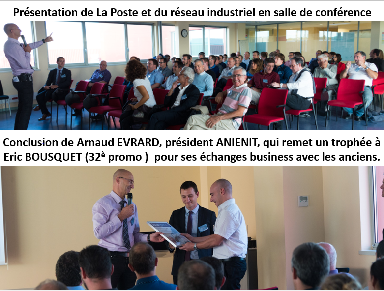 Conclusion de Arnaud EVRARD, président ANIENIT, qui remet un trophée à Eric BOUSQUET (32è promo ) pour ses échanges business avec les anciens.