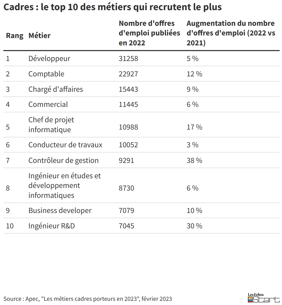 Cadres : quels sont les 10 métiers qui recrutent le plus en 2023 ?