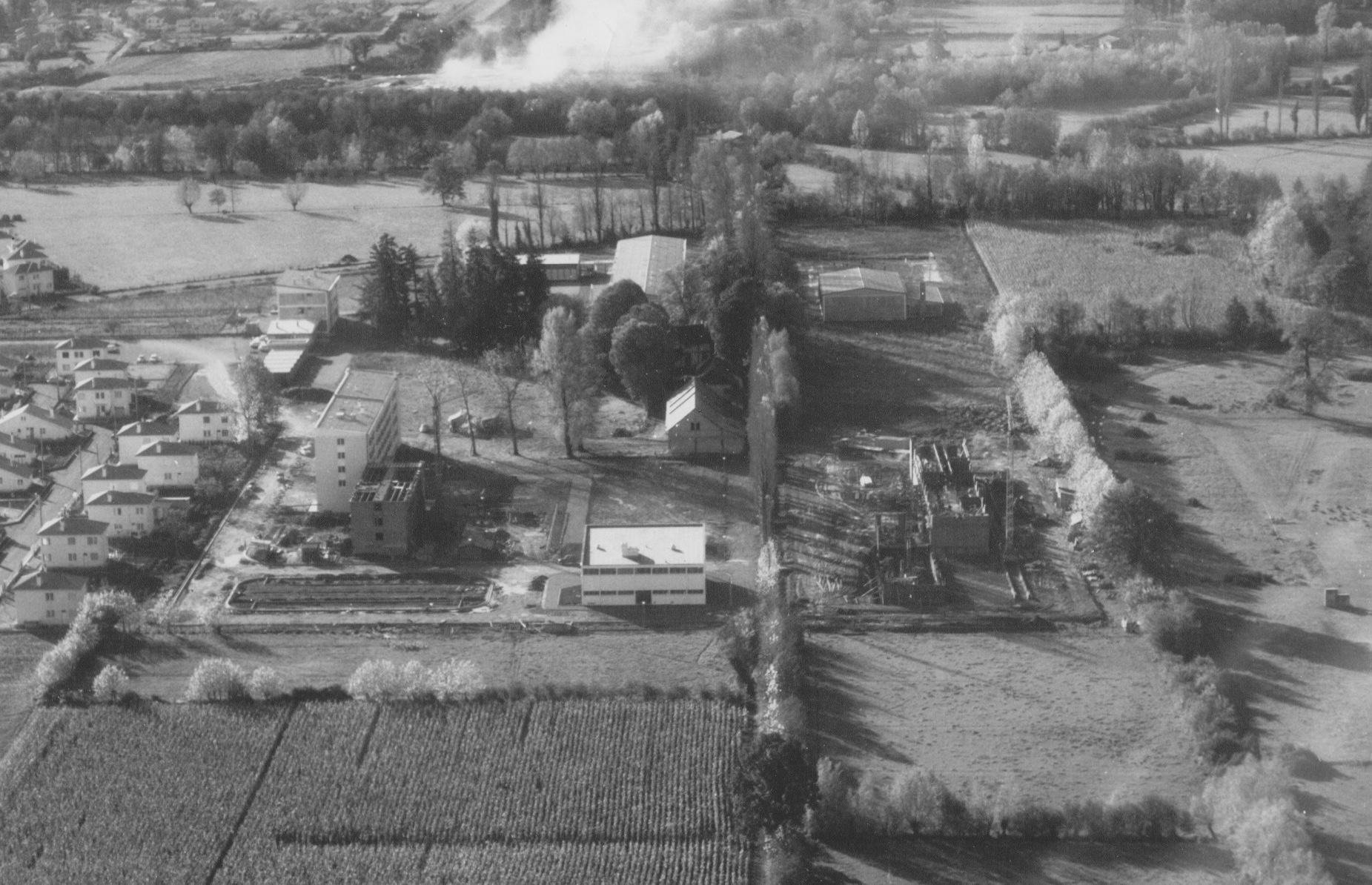 Tout d'abord une photo de l'ENIT et de la Cité, elle a été prise le 15/11/1965 à 10h30, l'horaire est très précis elle a été prise d'un hélicoptère du 5ème GALAT, régiment basé à Tarbes à l'époque.