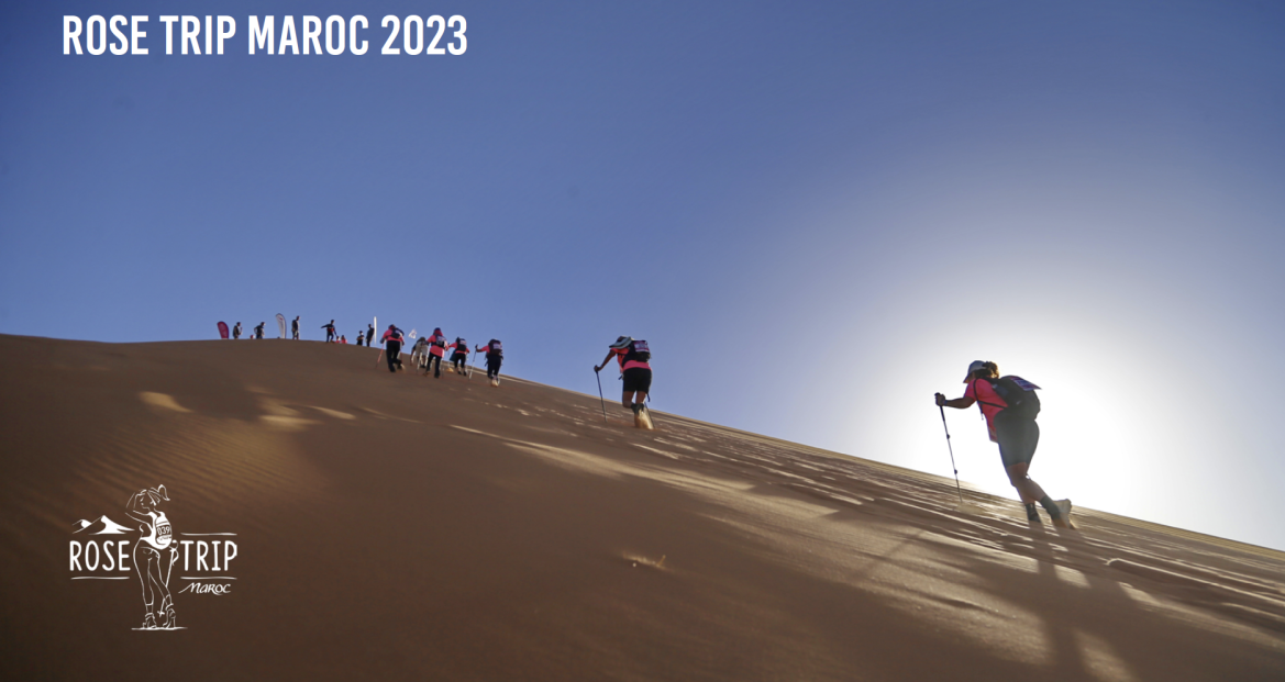 Dernière journée d’aventure durant laquelle les associations sont mises à l’honneur ! Le matin, nous avons gravi ensemble la plus haute dune du désert de Mergzouga aux couleurs et en soutien à Ruban Rose. Un moment symbolique où l’entraide a permis des exploits. L’après-midi, des femmes soutenues par l’association Enfants du désert sont venues présenter leurs réalisations sur métiers à tisser, l’occasion aussi d’échanger avec elles sur ce que l’association leur avait apporté. Enfants du désert vise notamment à rendre autonomes les femmes du désert. Nous avons pu également visiter la tente de Jeune et Rose, un collectif de jeunes femmes qui ont affronté le cancer du sein entre 20 et 40 ans. L’association a pour but de mener des actions de prévention fortes et innovantes. L’après-midi a également permis aux filles du camp de mieux connaître l’association Surfrider Foundation Maroc qui travaille à la préservation de l’environnement et la protection des océans. L’association, dont nous avons été les ambassadrices, a accompagné l’organisation du trek au tri des déchets et distribué des sacs pour la collecte des déchets du désert.