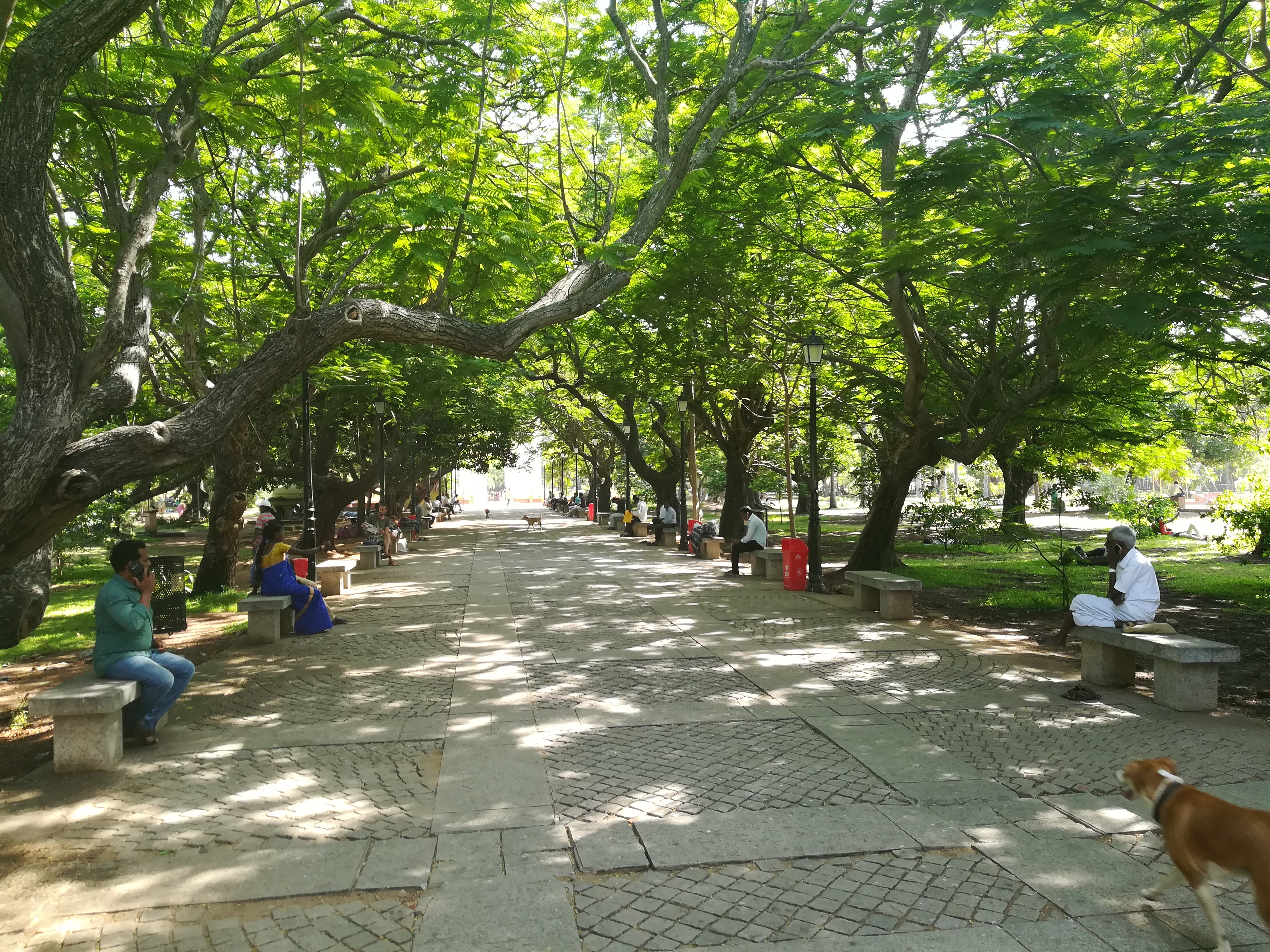 Le parc Barathi ombragé est au bout de la rue Suffren, la rue de mon hôtel. Il est envahi en cet après-midi par des passants aux multiples croyances : tamouls, chrétiens, musulmans, hindouistes... Une nana s'entraîne au hula hoop. Les autres se prélassent sur l'herbe ou sur les bancs.