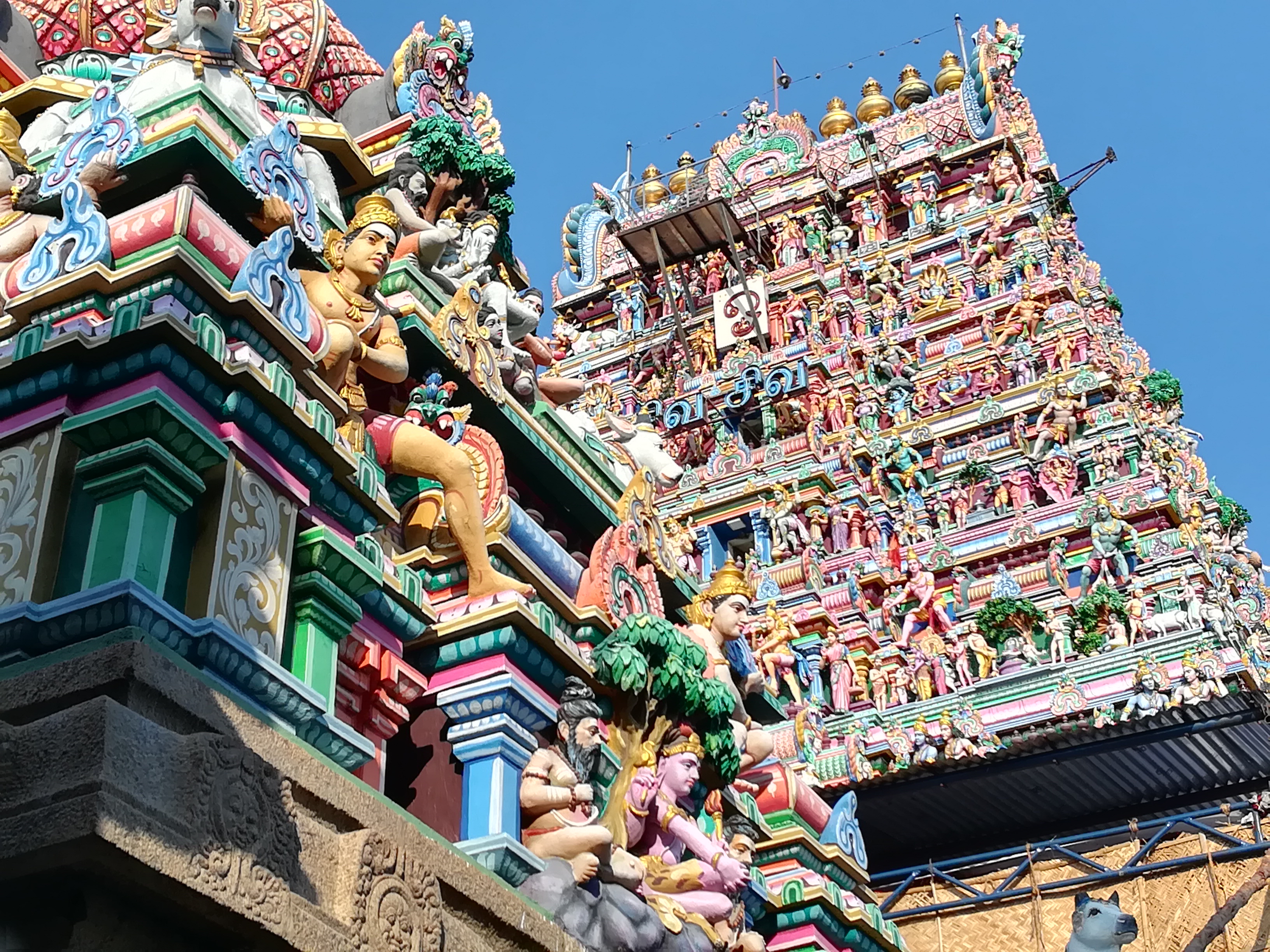 Le temple majestueux Arulmigu Kapaleeshwarar, du nom du seigneur qu’il idolâtre, est l'un des sanctuaires sacrés du Tamil Nadu. Il s'agit d'un temple dédié à Lord Siva et à la déesse Karpagambal. C’est un ancien temple datant du VIIème siècle et, en ce samedi, il est très concouru. Ah, ça me change des églises et des mosquées !