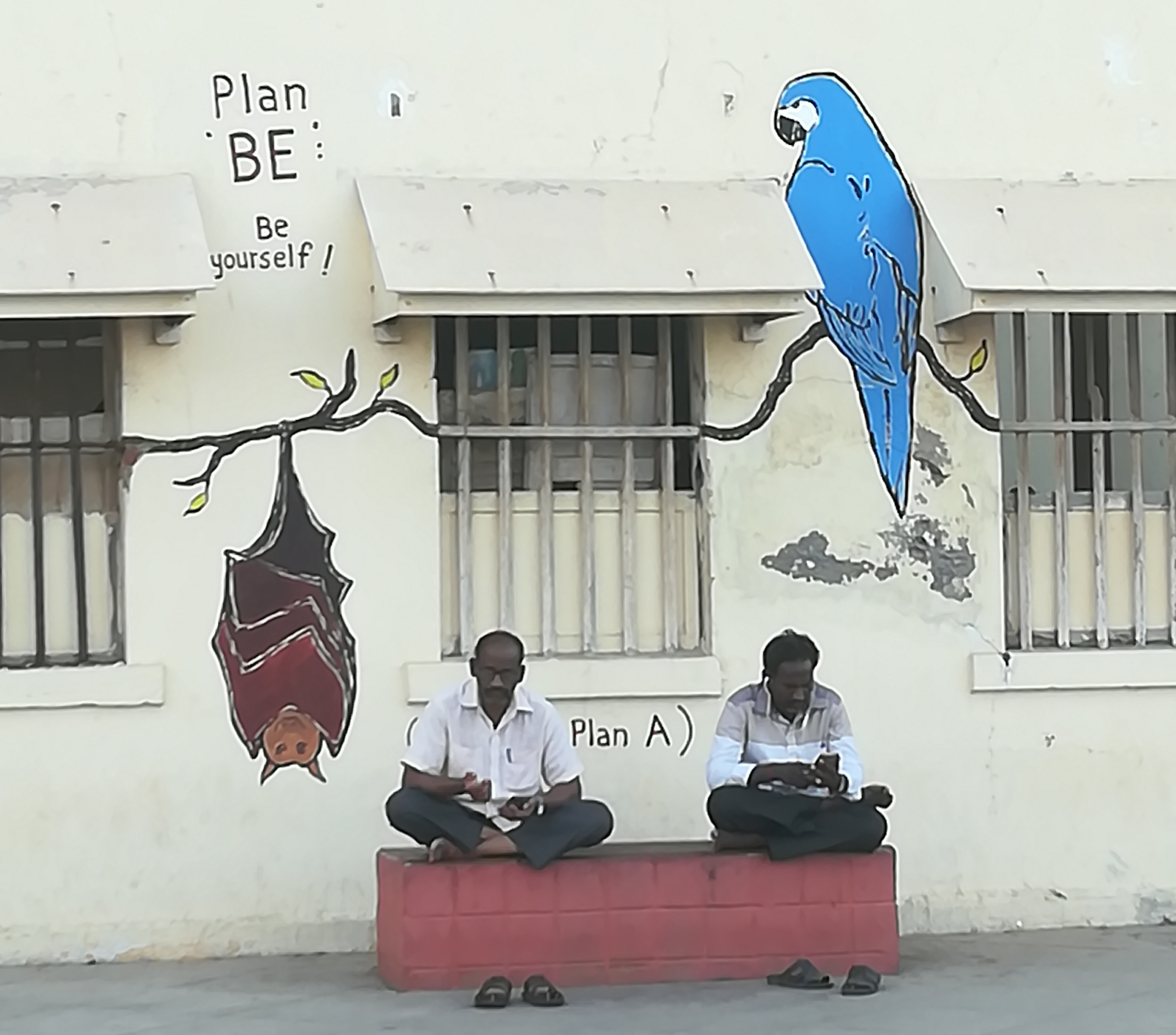 Les hindous ont l'art des couleurs : ces peintures sur supports divers, exposées à l'occasion d'un campement sur le dépistage du glaucome, sont saisissantes de vérité : Gandhi, Mère Theresa et Abdul Kalam, seul président d'Inde issu de cette région du Tamil Nadu, y trônent.
