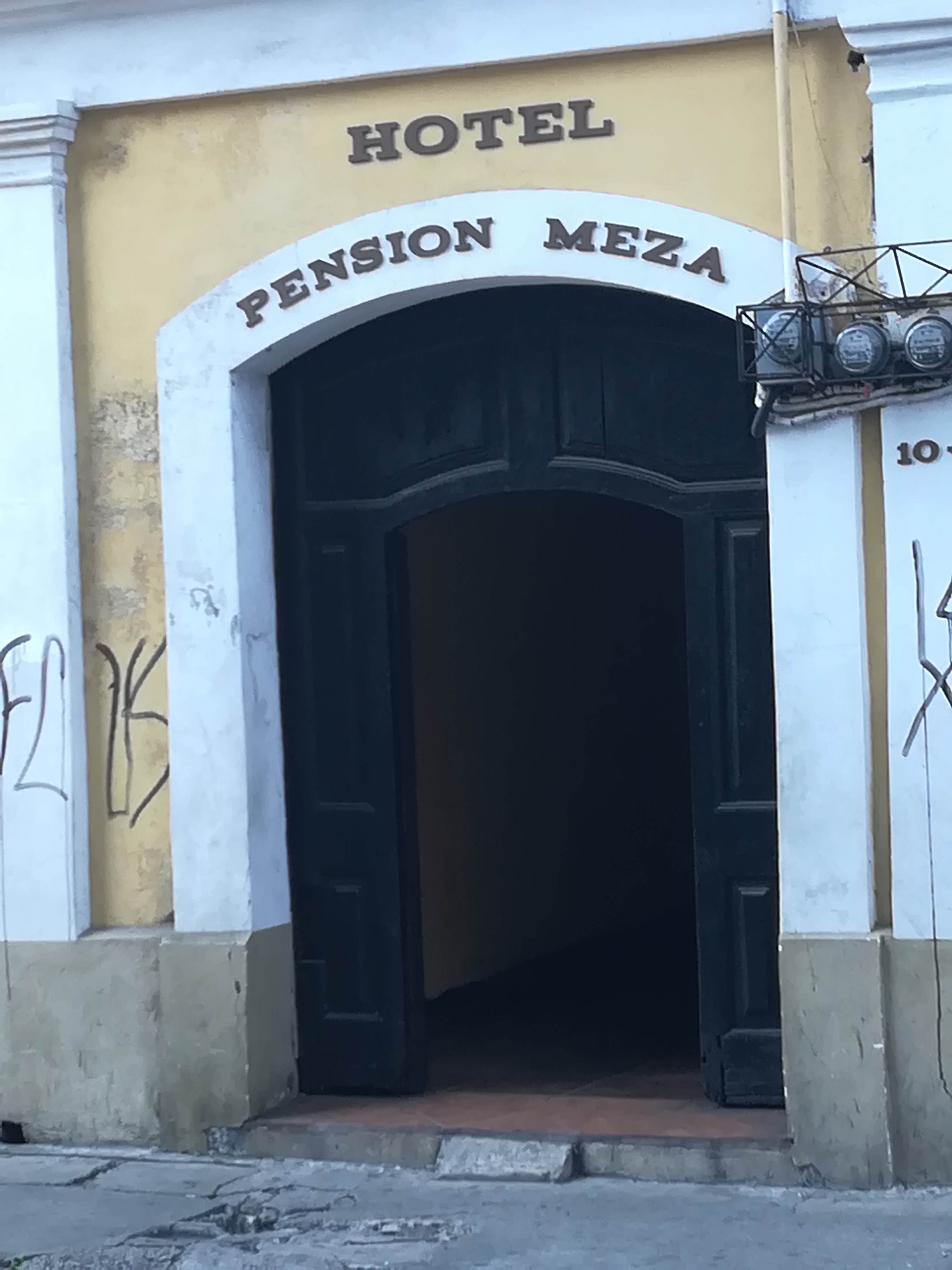 Si tu as suivi mon voyage en Amérique latine de l’année dernière, tu sais combien le souvenir d’Ernesto Che Guevara m’est cher. Jusqu’à ce qu’il rencontre Fidel Castro, c’était un homme brillant, avide de connaissance, épris de justice sociale, un sportif accompli malgré son asthme chronique ; petit à petit, il est devenu le révolutionnaire légendaire encore encensé. Lorsqu’il débarque à Cuba, il opte pour abandonner sur la plage la caisse des médicaments et préférer celle des munitions : si j’apprécie le parcours de l’aventurier jusqu’à ce moment-là, je n’aime pas le guérillero qu’il devient et qui tuera de sang-froid. Lors de mon précédent passage ici à Guatemala city, je n’avais pu me rendre dans deux lieux importants, témoignant de son séjour dans la capitale : le restaurant El Portal et le petit hôtel-pension Meza.