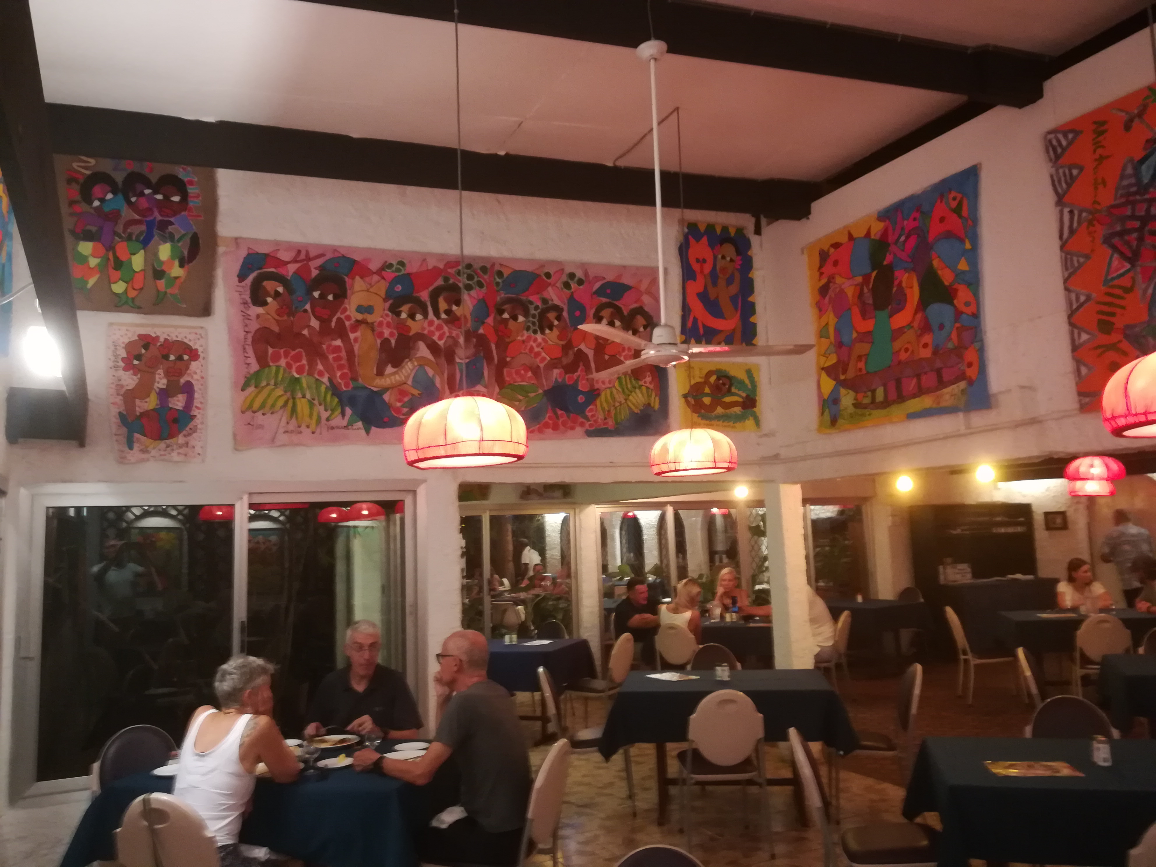 A deux pas de mon hôtel, l’Houstalet, très bon restaurant devient très vite ma cantine. D’étranges toiles aux regards insolites de femmes, peintes avec des lèvres marquées, des corps difformes et grande abondance de couleurs, y sont exposées. Le patron, Clément Martinez un octogénaire fantaisiste, me dit être l’ami du peintre qu’il a connu à Papeete dans les années 60. Je décide de lui rendre visite.