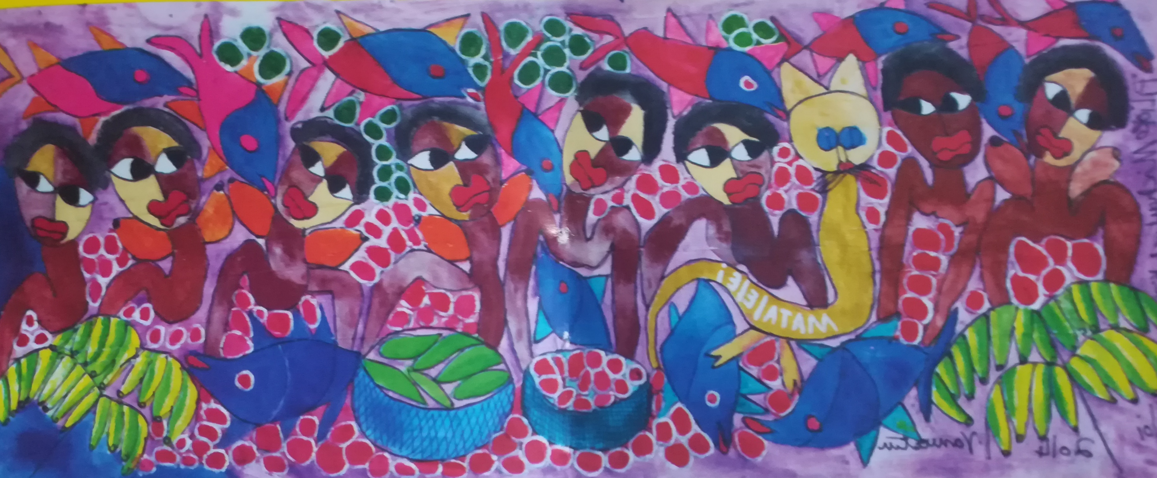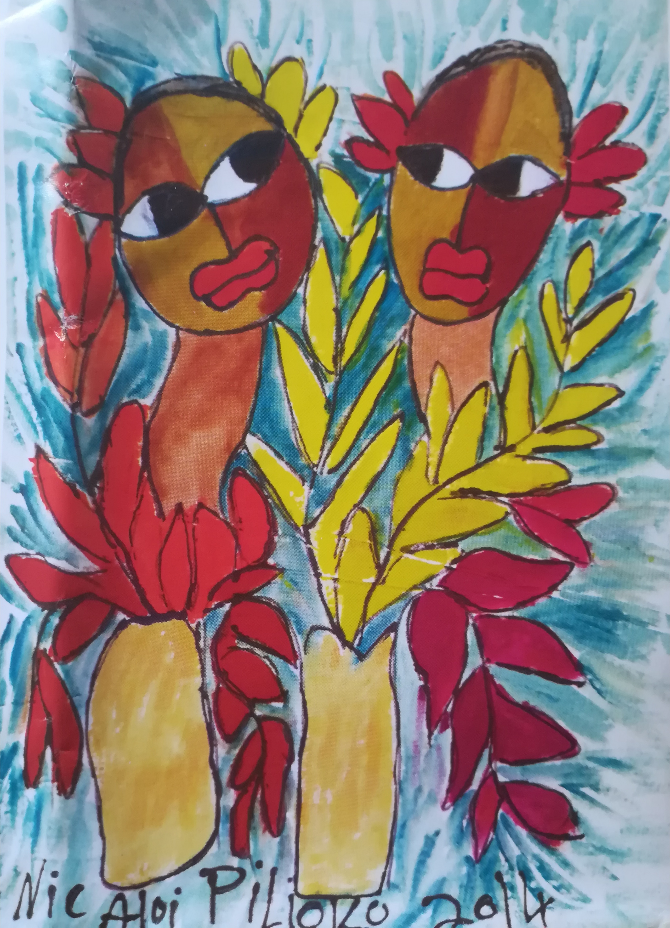 L’artiste, Aloï Piliako est né sur l'île voisine de Wallis et s’est installé ici en 1961, avec son ami Nicolas, à 5 kilomètres de Port Vila, à Esnaar sur les rives du lagon d’Erakor. Les deux sont considérés comme les précurseurs du courant artistique contemporain dans le Pacifique. Aujourd’hui, Aloï a 85 ans et Nicolas est décédé. Le souvenir de son compagnon reste présent dans toutes ses toiles, signées dorénavant Nicaloï.