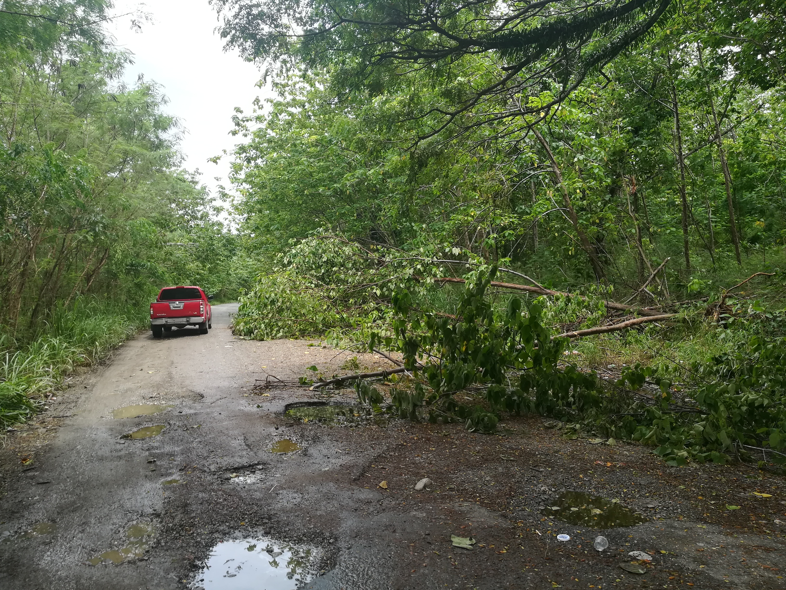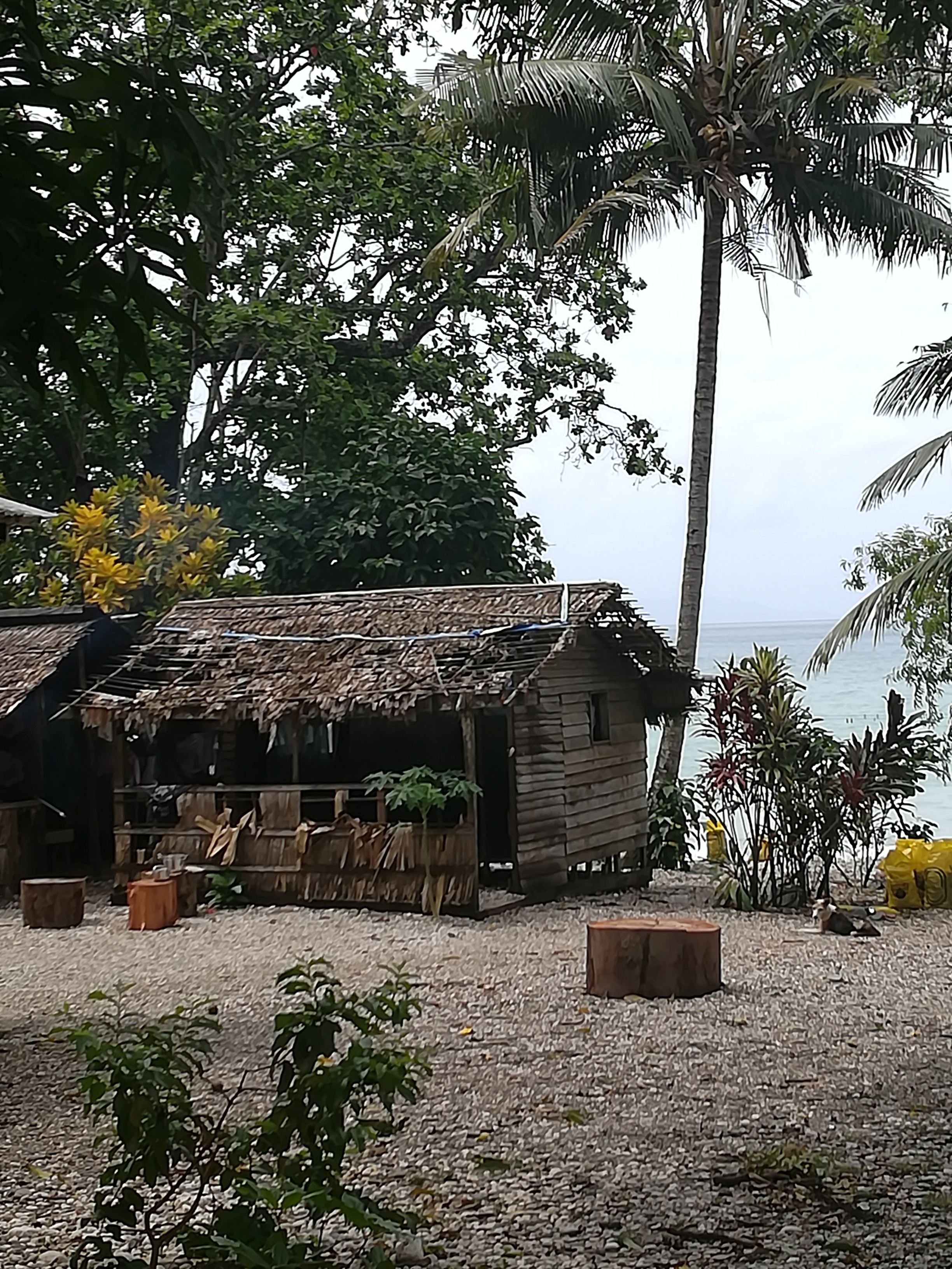 Les 24 kilomètres de route pour venir jusqu’ici sont en très mauvais état surtout après le passage de la tempête. Finalement, mes accompagnants et moi avons été veinards : les cocotiers tombés sont évacués ; par contre lorsque l’un d’eux barre la route, il est d’usage de payer le tronçonneur pour pouvoir passer. J’ai un faible pour ce type de péage.