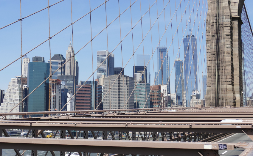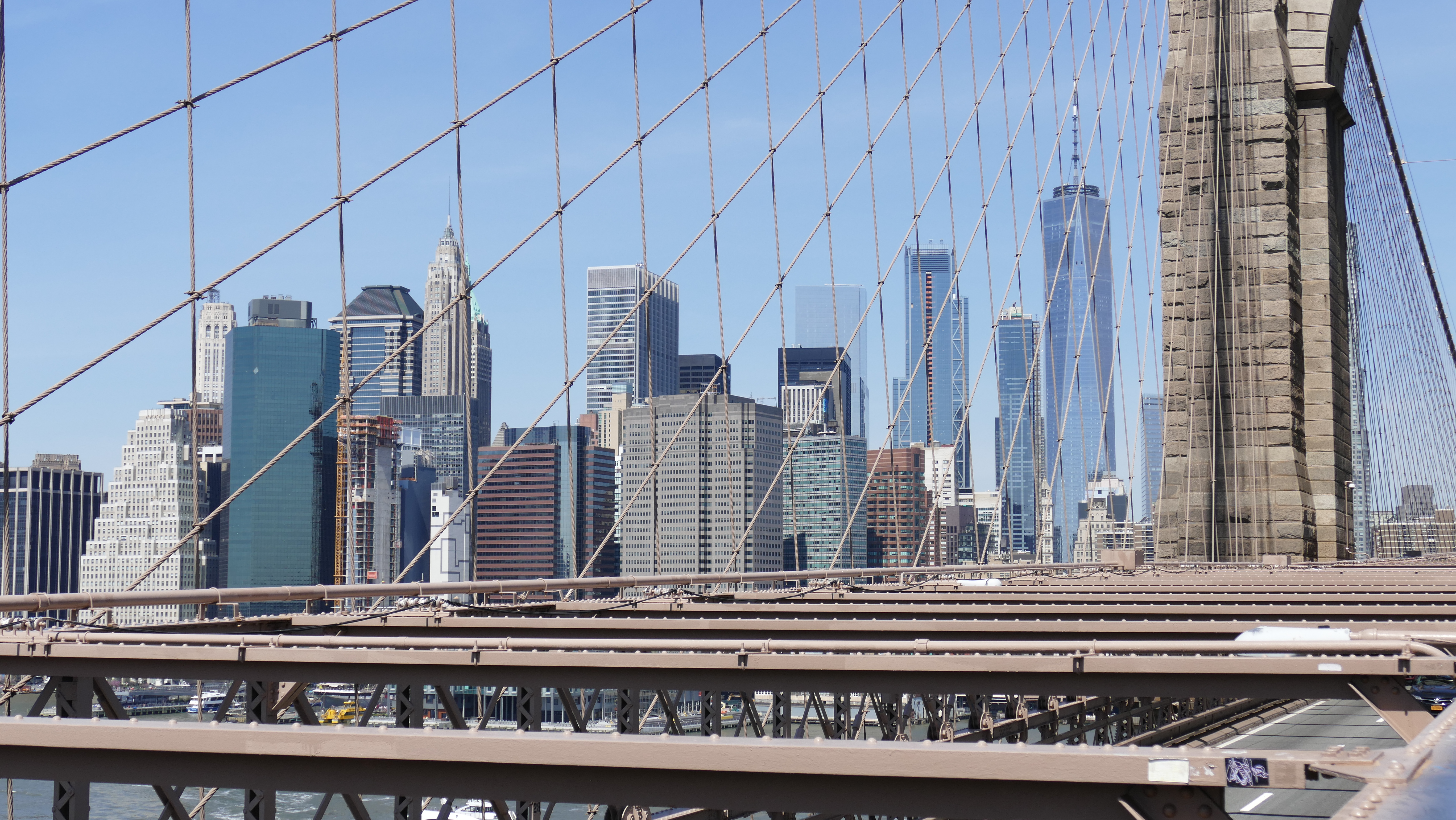 Le pont de Brooklyn : la promenade de Brooklyn vers Manhattan vous permet d'avoir une vue magnifique sur le sud-est de Manhattan.
