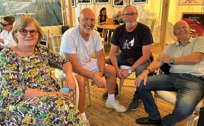 Note : sur la photo quelques uns des énisards qui se sont croisés à Marciac, de gauche à droite, Martine (8), Jean-Claude (17), Jean-Yves (17), Jean-Jacques (9)